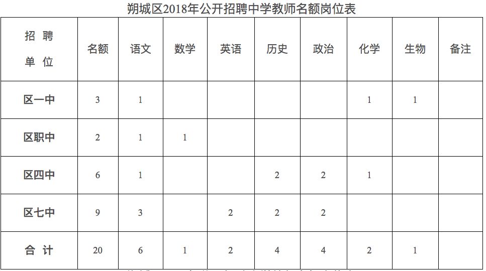 附:1、朔城区2018年公开招聘中小学教师名额岗位表。